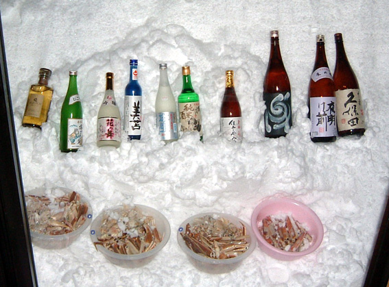 | お酒&かに 準備もできて 寒〜い窓の外で 出番を待つ お酒&かに (おいしそう〜) 2006/02/11 飛騨 |